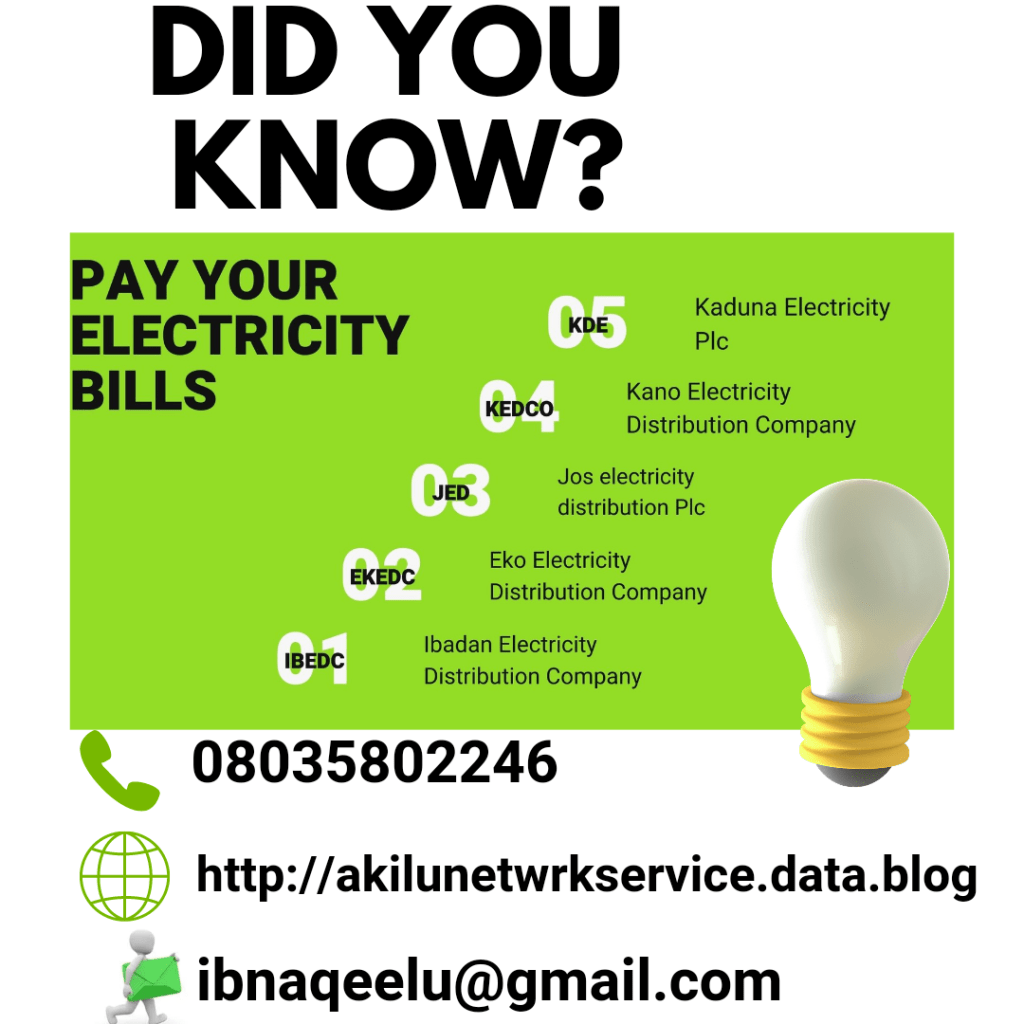 Do you know that with ANS CONNECT you can pay your electricity bills? Posted byIliyasu Alhaji AkiluOctober 5, 2022Posted inUncategorized Share this: Share on Facebook (Opens in new window) Facebook Share on WhatsApp (Opens in new window) WhatsApp More Email a link to a friend (Opens in new window) Email Like Loading... Related Published by Iliyasu Alhaji Akilu I'm a graphics designer View more posts